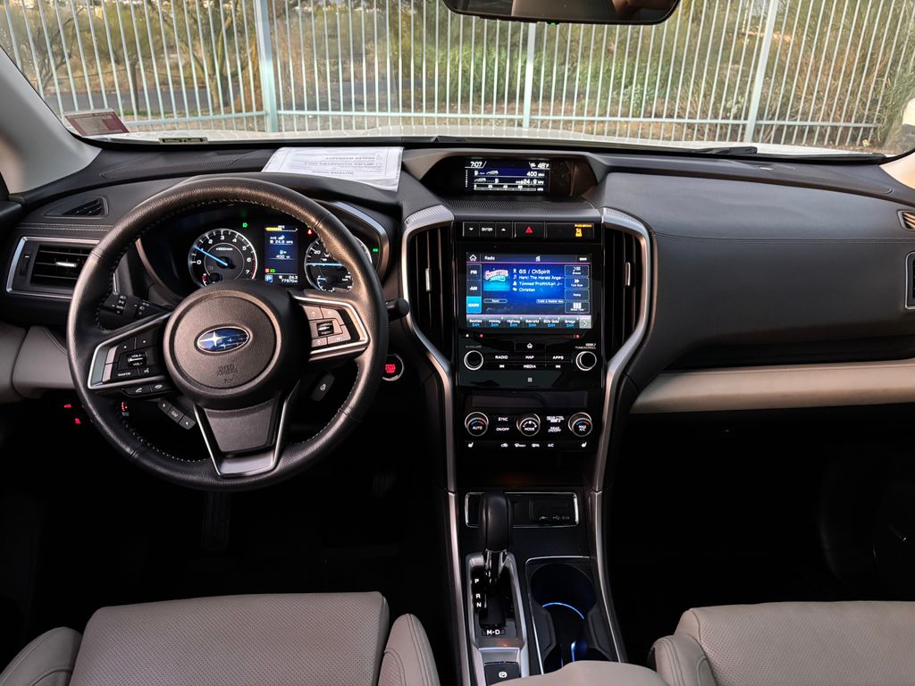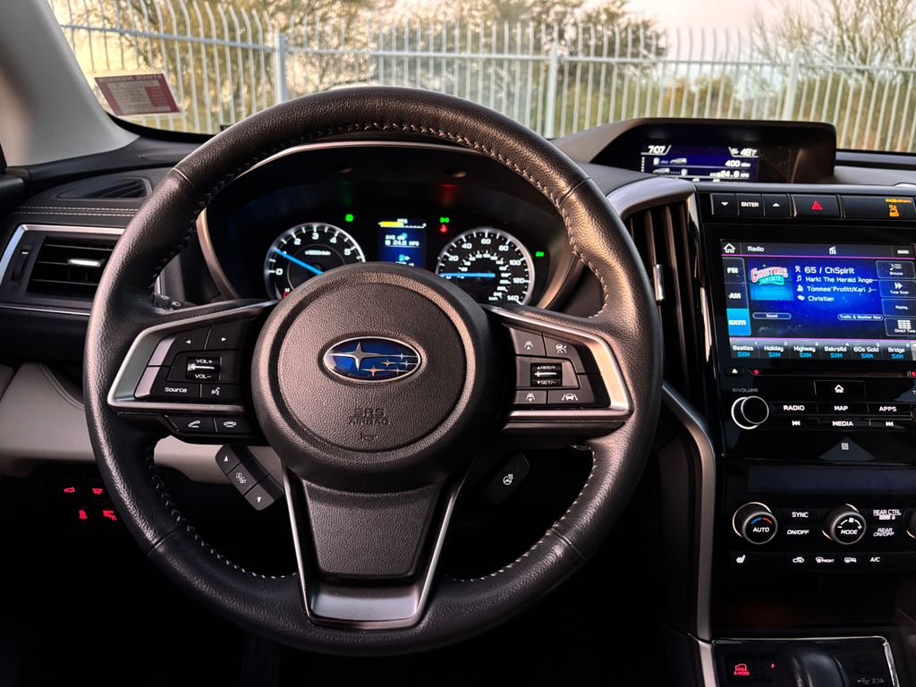Driver's Memory Seat, Perforated Leather-Trimmed Upholstery, Power Liftgate and GPS Navigation System! Front Dual Zone A/C and Rear Air Conditioning! Panoramic Power Moonroof/Sunroof! One Year Complimentary Maintenance(see dealer for details)! SYMMETRICAL ALL-WHEEL DRIVE! Radio: Subaru STARLINK 8.0" Multimedia Nav System, Harman Kardon Sound, CD player, Bluetooth Wireless, USB Port, STARLINK/Apple CarPlay/Android Auto and Steering wheel mounted audio controls! EyeSight is an extra set of eyes on the road, and if need be, an extra foot on the brake when you d rive! EyeSight Driver Assist Technology is Adaptive Cruise Control, Pre-Collision Throttle Management, Pre-Collision Braking, Lane Departure and Sway Warning with Lane Keep Assist! Reverse Automatic Braking, Blind-Spot Detection with Lane Change Assist and Rear CrossTraffic Alert! X-MODE optimizes engine output and transmission ratio, increases all-wheel drive system engagement and uses enhanced control of the VDC system to reduce individual wheelspin, providing optimal traction on low-friction surfaces, X-MODE also incorporates Hill Descent Control that helps to maintain a constant vehicle speed when traveling downhill, enhancing vehicle control! Heated Front Bucket Seats, Power windows,Speed control and More!
